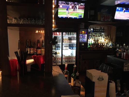 Right in the parking lot of the hotel. Small but close to home. We are here for a comedy show and a meal. Not crowded, doors open at 7. Place your food orders at the bar and have a seat in the dining